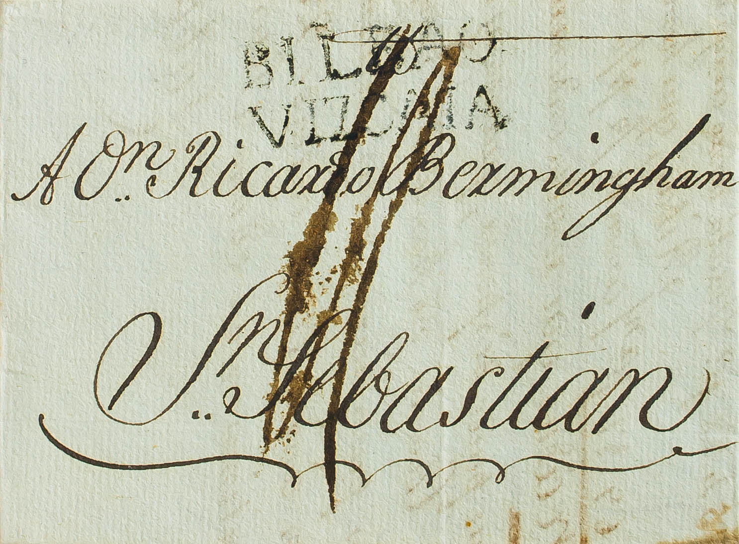 1799. BILBAO a SAN SEBASTIAN. Marca BILBAO / VIZCAIA, en negro (P.E.13) edición 2004. MAGNIFICA.