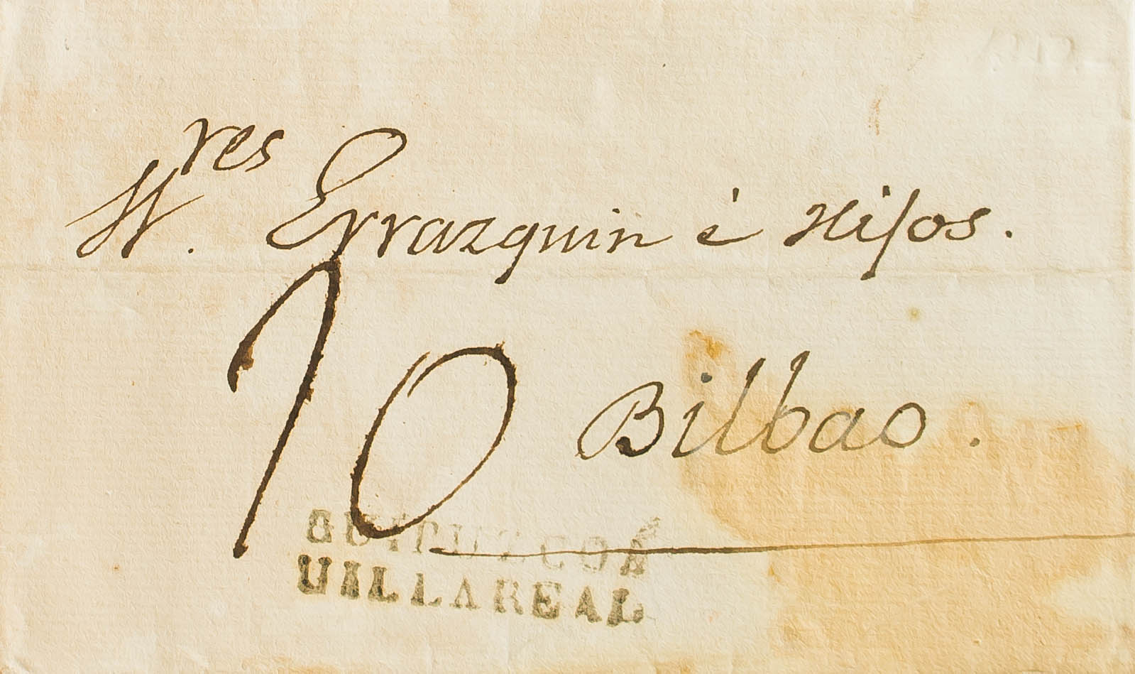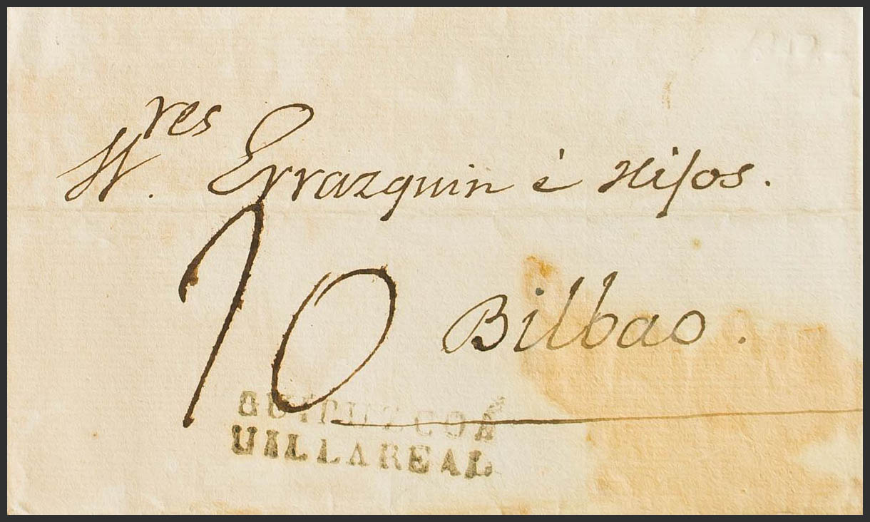 1831. AZPEITIA a BILBAO. Marca GUIPUZCOA / VILLAREAL, en negro (P.E.8) edición 2004. MAGNIFICA.