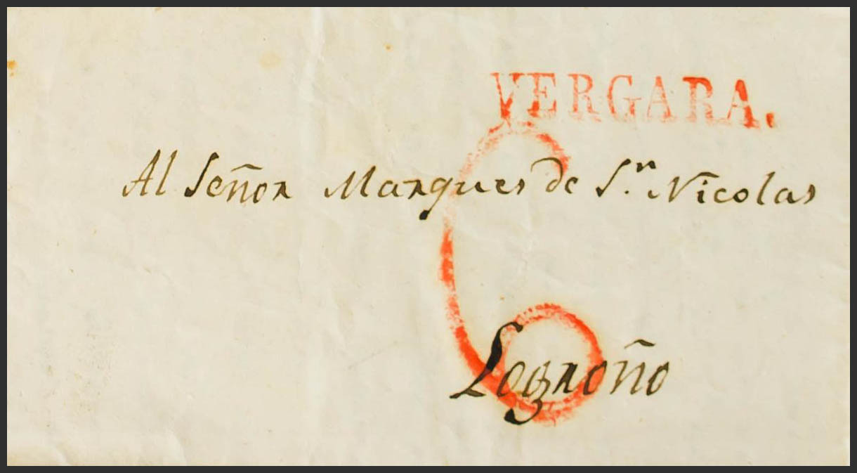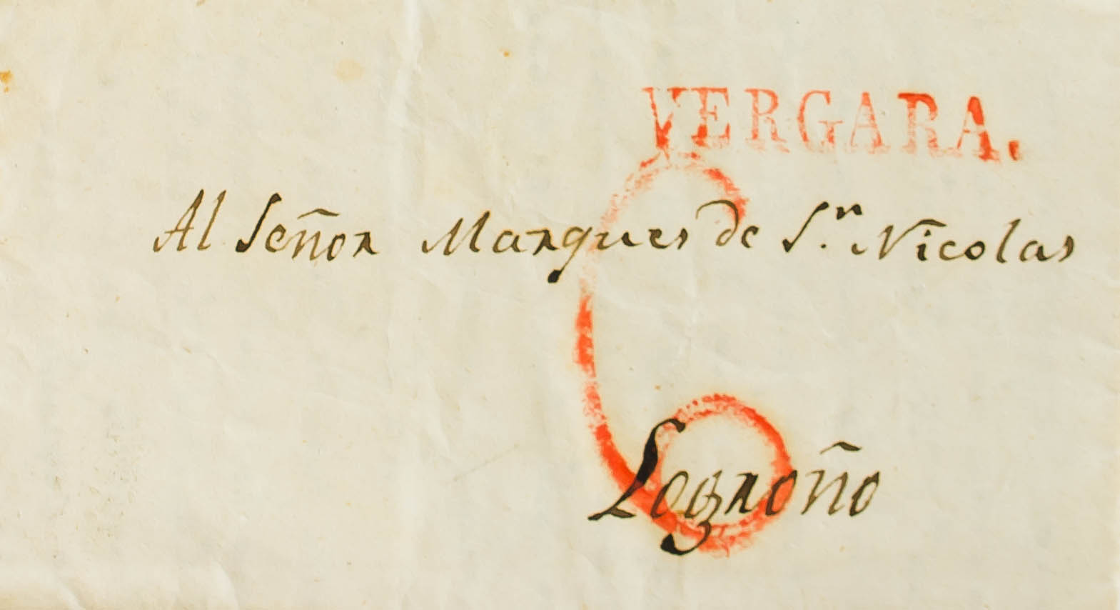 1841. AZCOITIA a LOGROÑO. Marca VERGARA (P.E.4) edición 2004. MAGNIFICA.