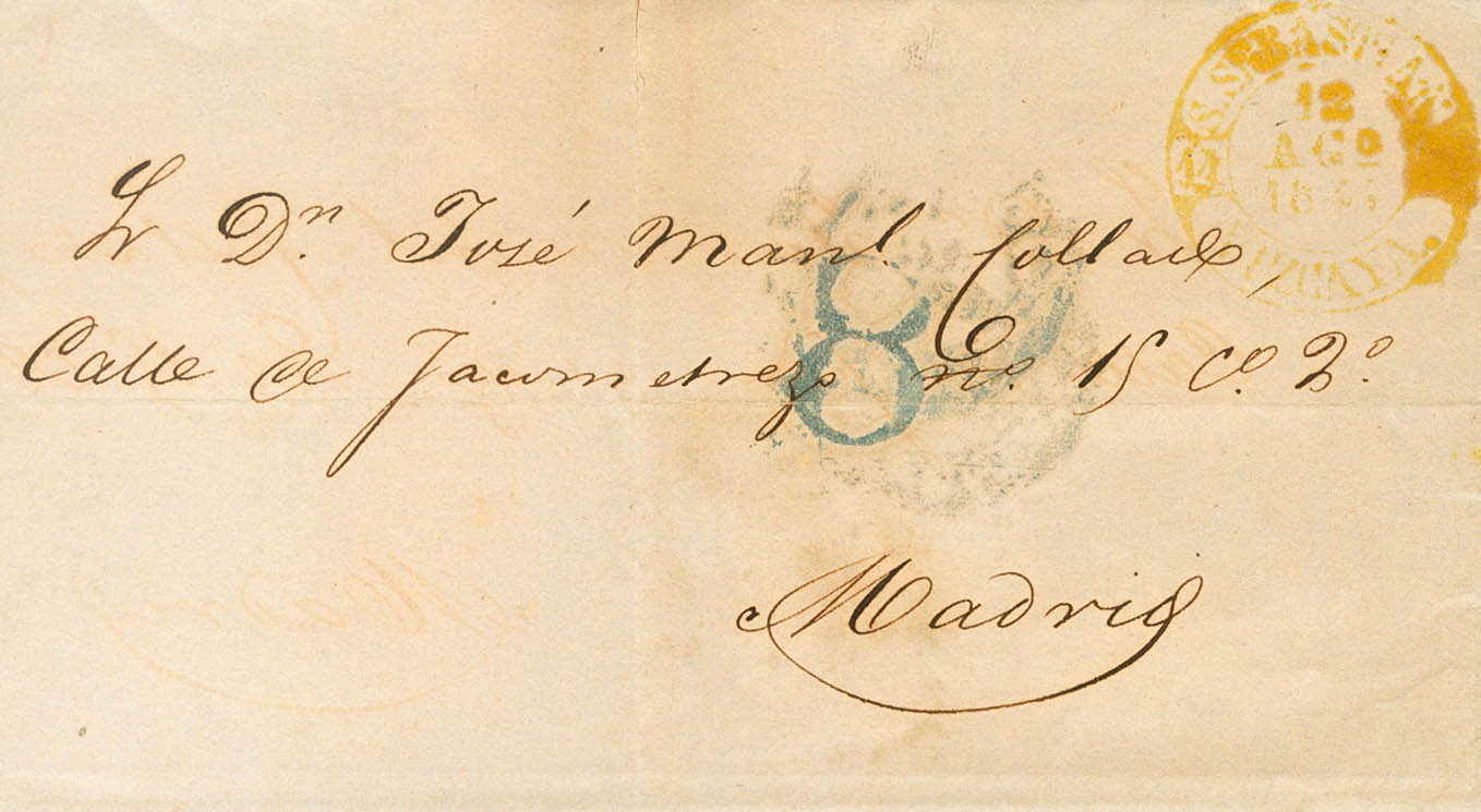 1844. SAN SEBASTIAN a MADRID. Baeza S.SEBASTIAN / VIZCAYA, en amarillo. MAGNIFICA.