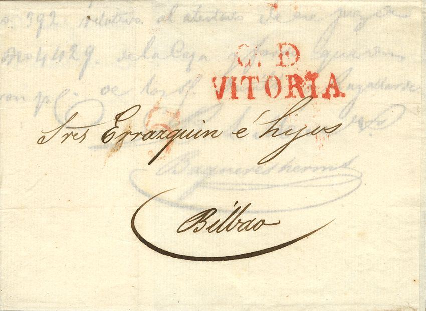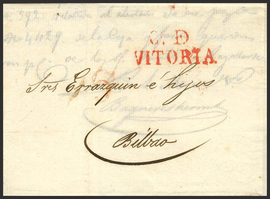 1832. VITORIA a BILBAO. Marca CD. DE / VITORIA (P.E.21) edición 2004. MAGNIFICA Y MUY RARA.