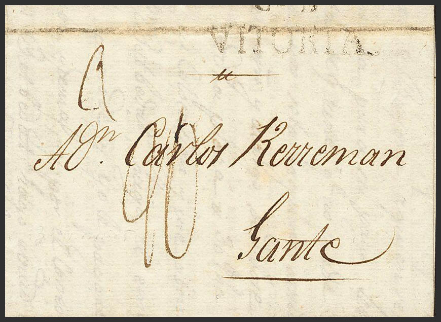 1805. VITORIA a GAND (FRANCIA). Marca CD. DE / VITORIA, en negro (P.E.13) edición 2004. MAGNIFICA.