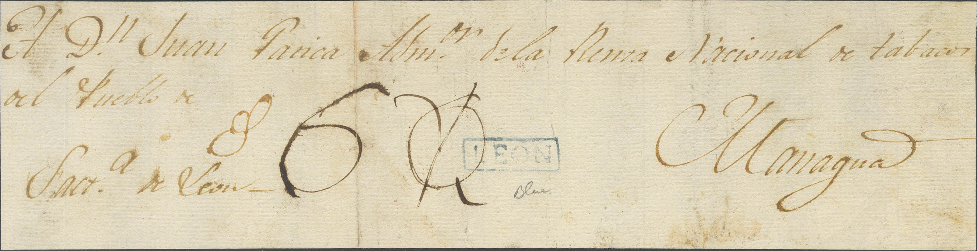 (1798ca). Frontal de LEON a MANAGUA. Marca LEON, en azul (P.E.2) edición 2004. MAGNIFICA Y RARA.