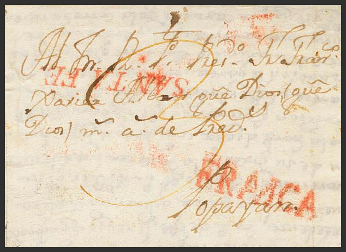 1782. SANTA FE (COLOMBIA) a POPAYAN (COLOMBIA), incluyendo el texto interior. Marcas SANTA FE y FRANCA (P.E.2, P.E.6) edición 2004, porteo manuscrito "3". MAGNIFICA Y RARISIMA, CIRCULADA EN EL PERIODO DE DOMINACION ESPAÑOLA EN COLOMBIA, CON EL TEXTO INTERIOR Y FECHADA.