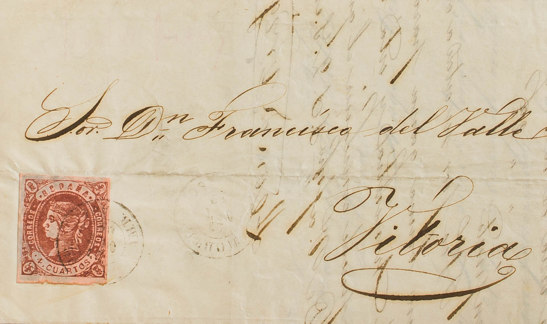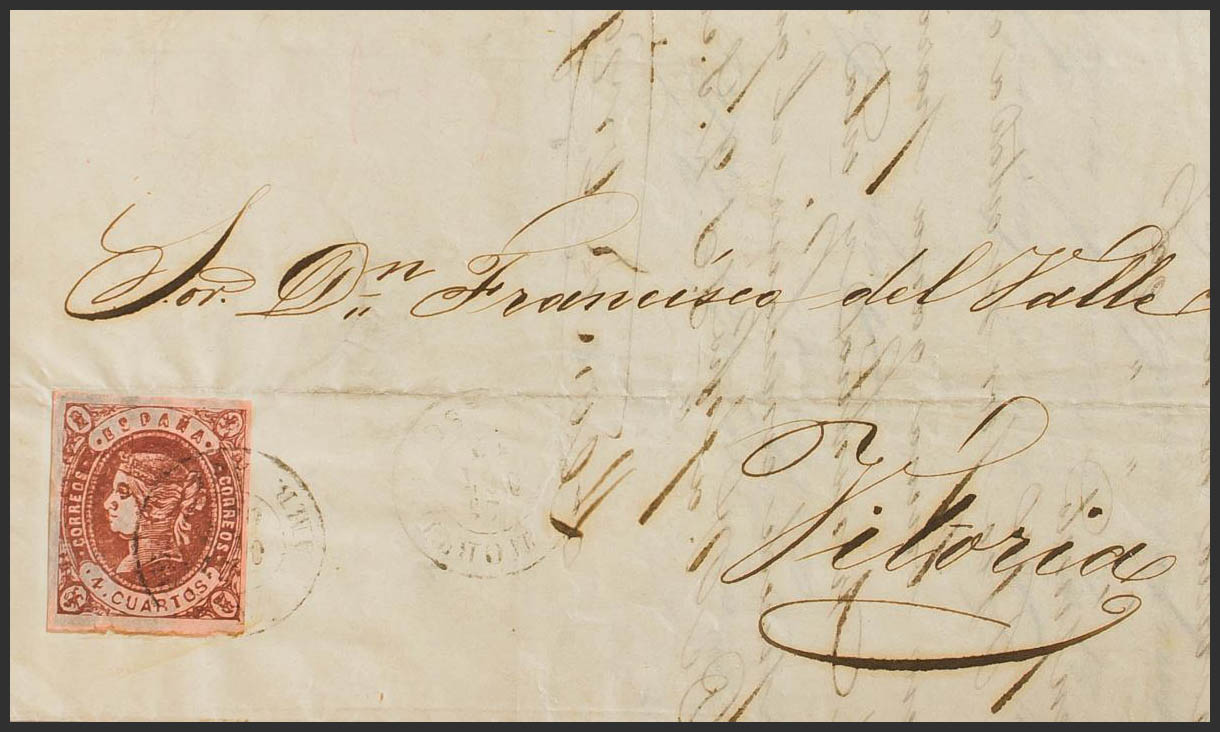 58. 1862. 4 cuartos castaño. ARAYA (ALAVA) a VITORIA. Matasello NORTE / AMB. ASC. MAGNIFICA.