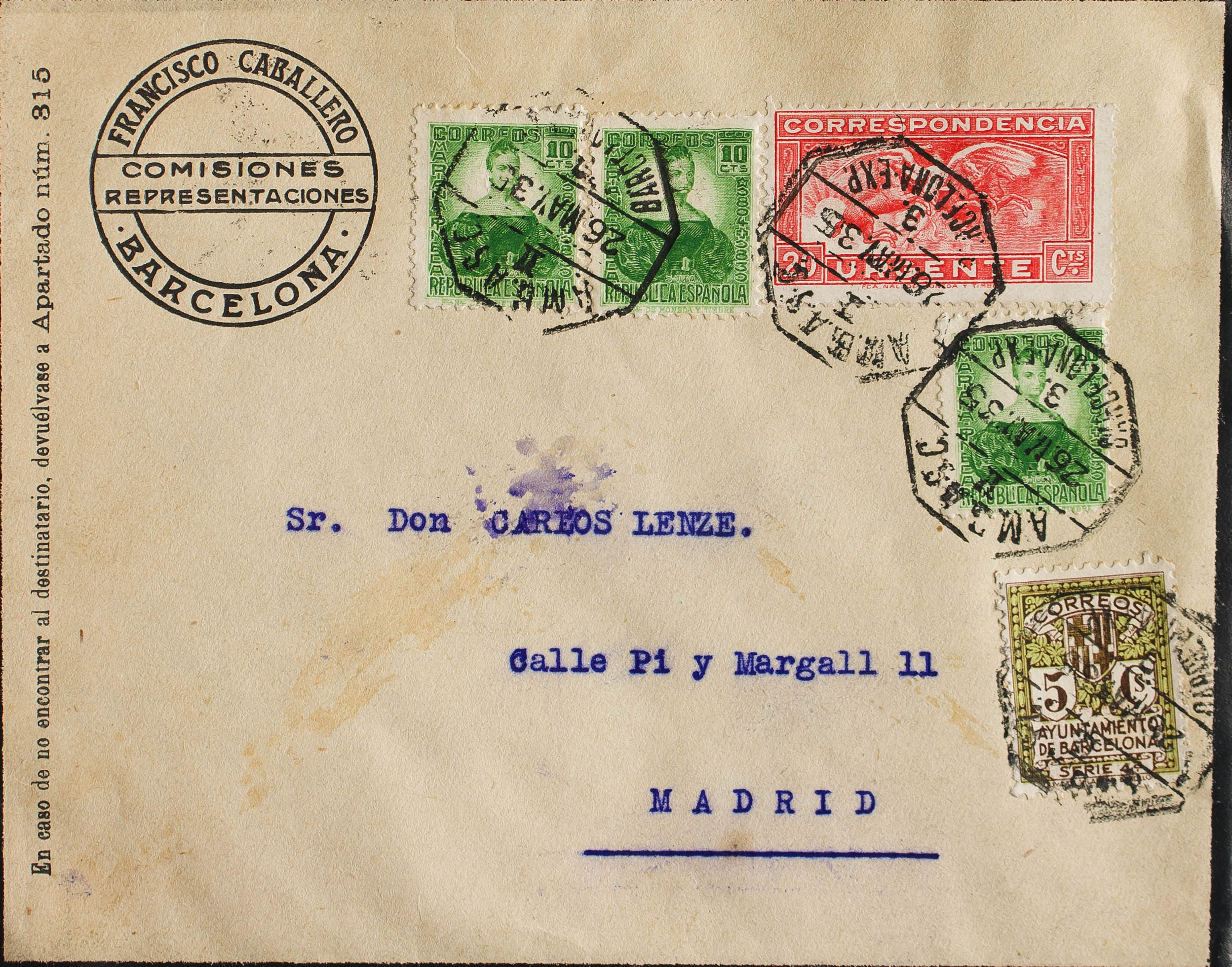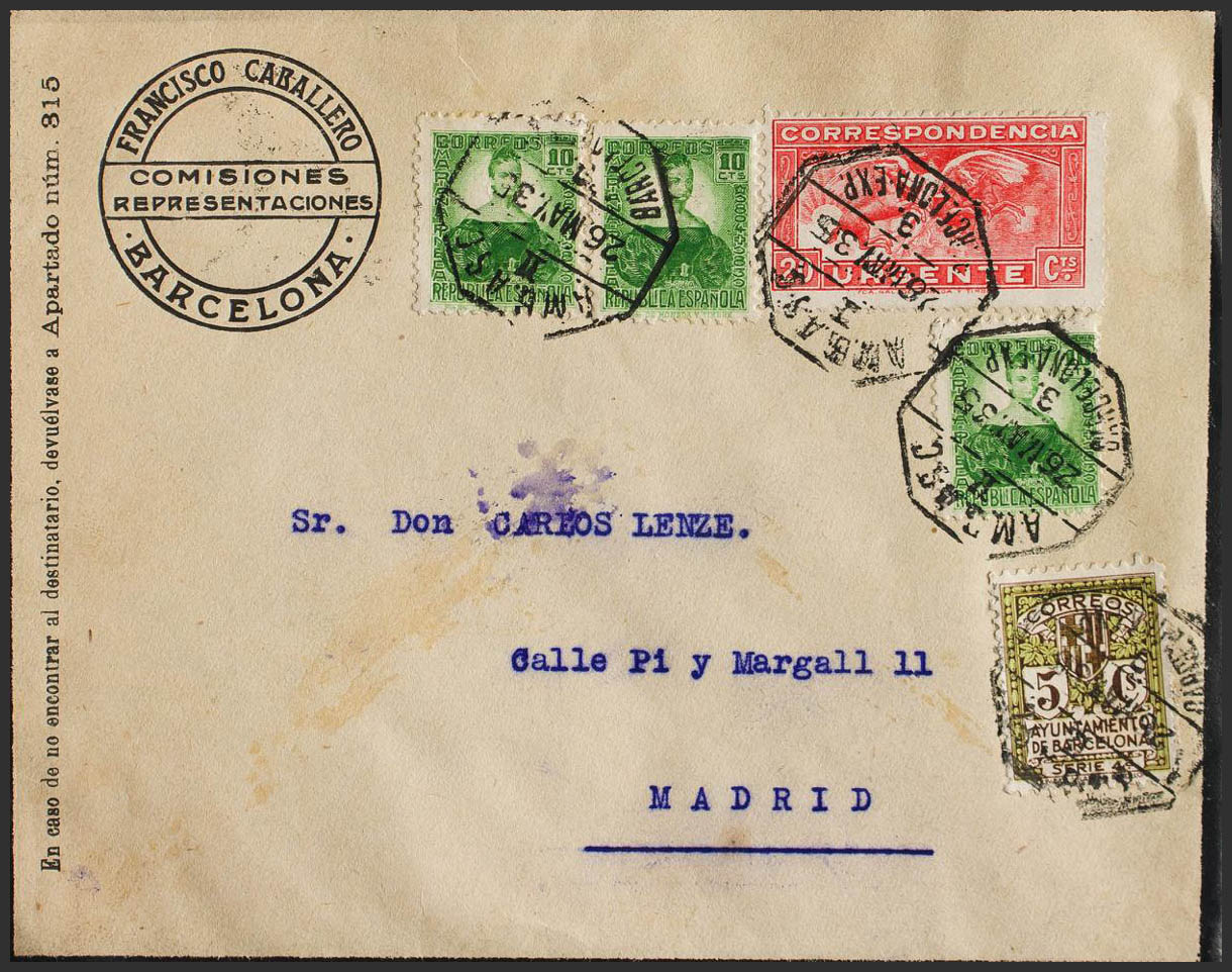 Ambulante. Historia Postal. AMB.ASC. II / BARCELONA-EXP, al dorso llegada. MAGNIFICA.