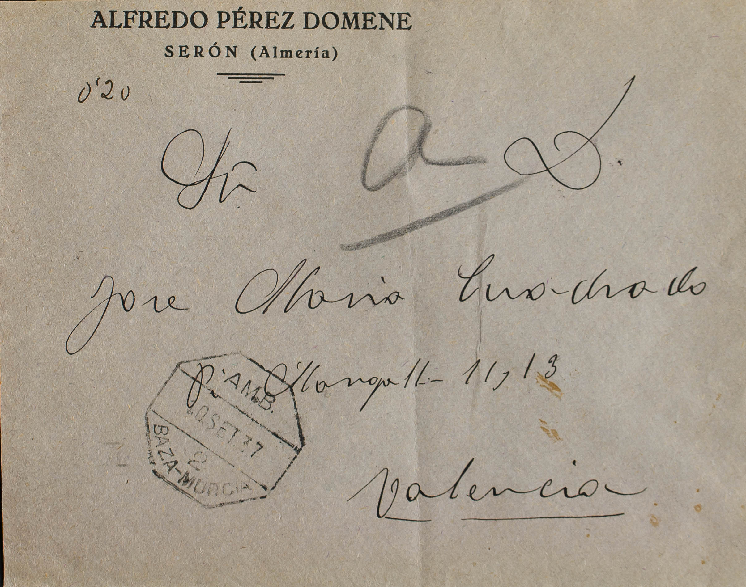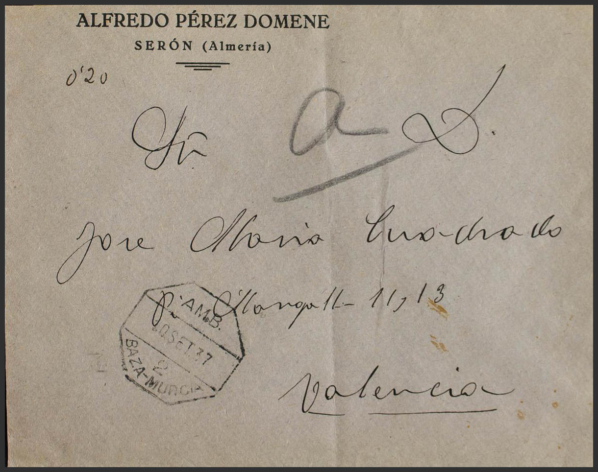 Ambulante. Historia Postal. AMB. / BAZA-MURCIA, al dorso "No hay sellos". MAGNIFICA.