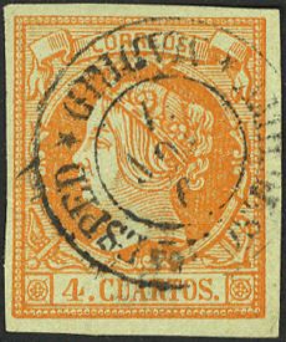 52. 1860. 4 cuartos amarillo. Matasello AMB.ASC. 2ª ESPED / *MADRID*.