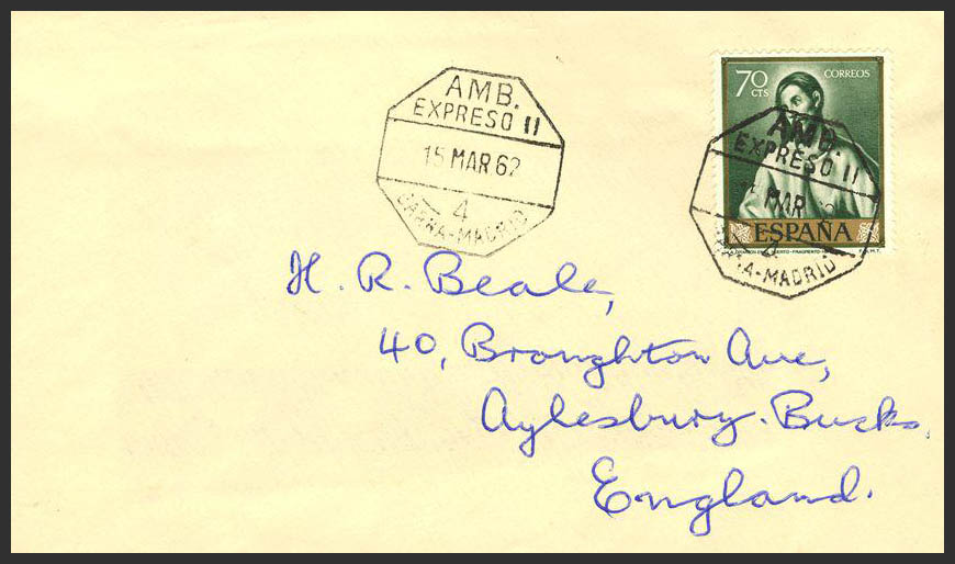 Ambulante. Historia Postal. AMB. EXPRESO II / BARNA-MADRID. MAGNIFICA.
