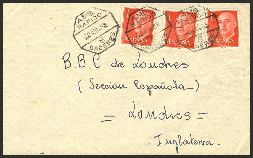 Ambulante. Historia Postal. AMB. / RAPIDO / 8 / CACERES. MAGNIFICO.