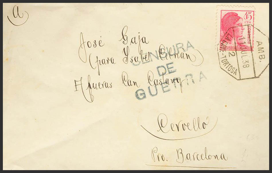 Ambulante. Historia Postal. AMB. / LA CAVE-TORTOSA. MAGNIFICA.