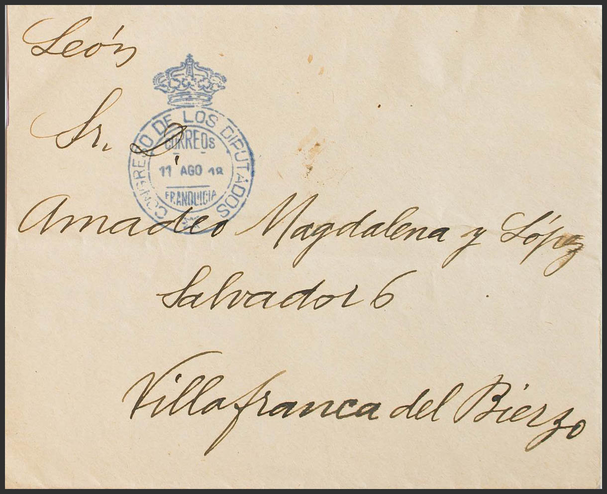 1918. MADRID a VILLAFRANCA DEL BIERZO. Circulada con franquicia CONGRESO DE LOS DIPUTADOS / CORREOS / FRANQUICIA, al dorso llegada. MAGNIFICA.