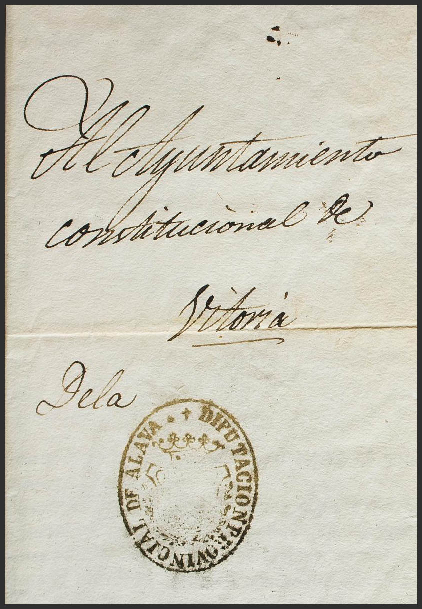 1842. Correo Interior de VITORIA. Marca de franquicia DIPUTACION PROVINCIAL DE ALAVA. MAGNIFICA.