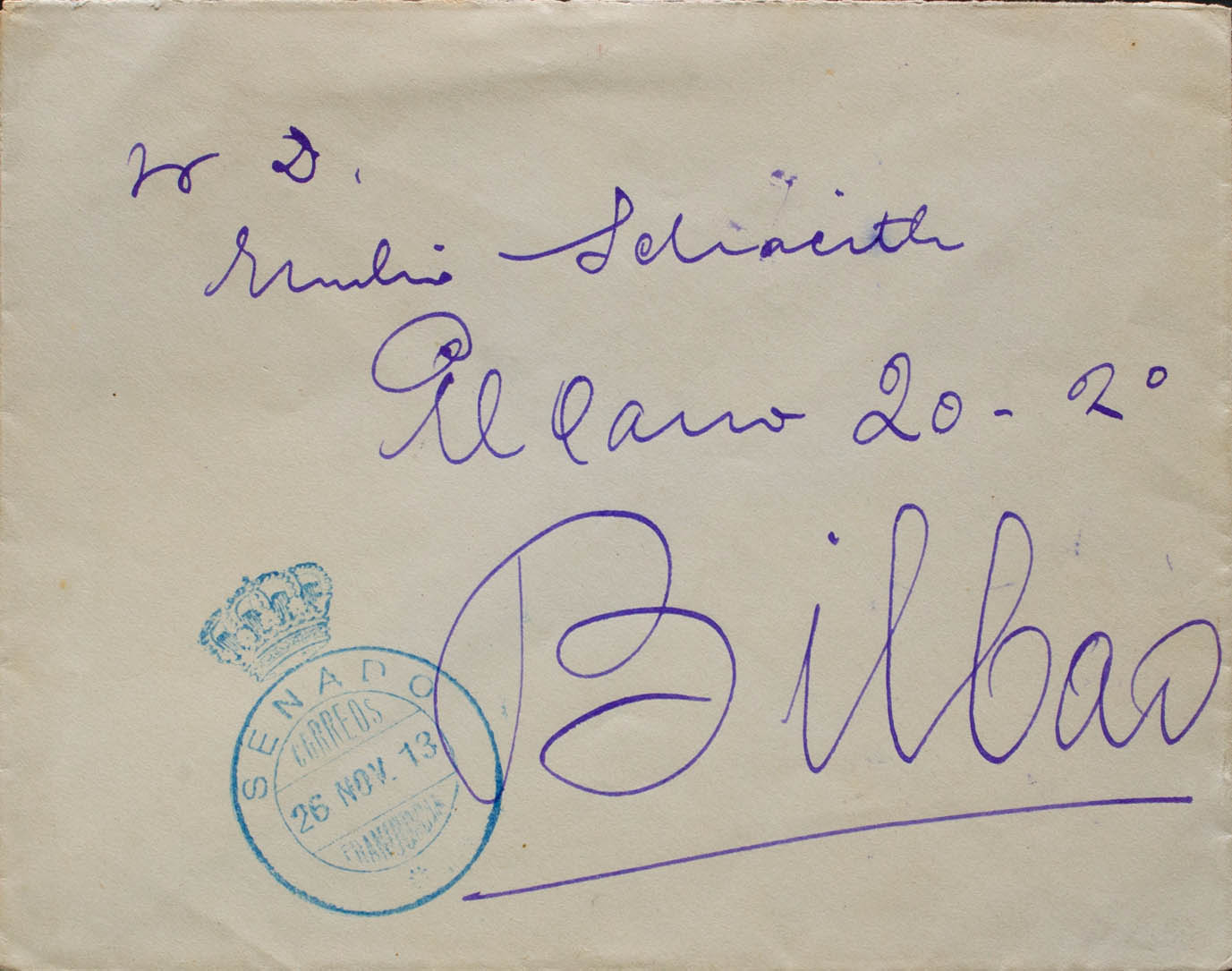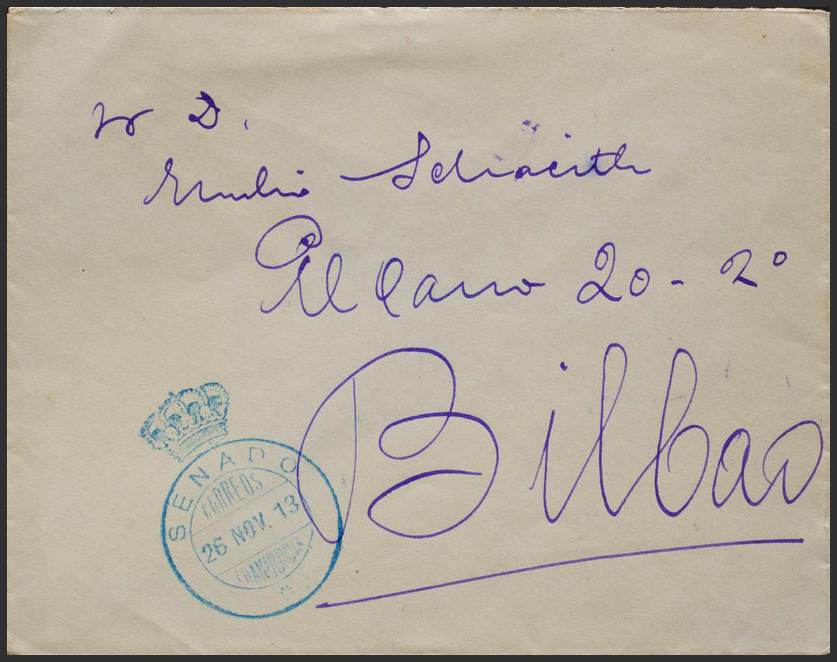 1913. MADRID a BILBAO. Marca de franquicia SENADO / *, en azul. MAGNIIFICA.