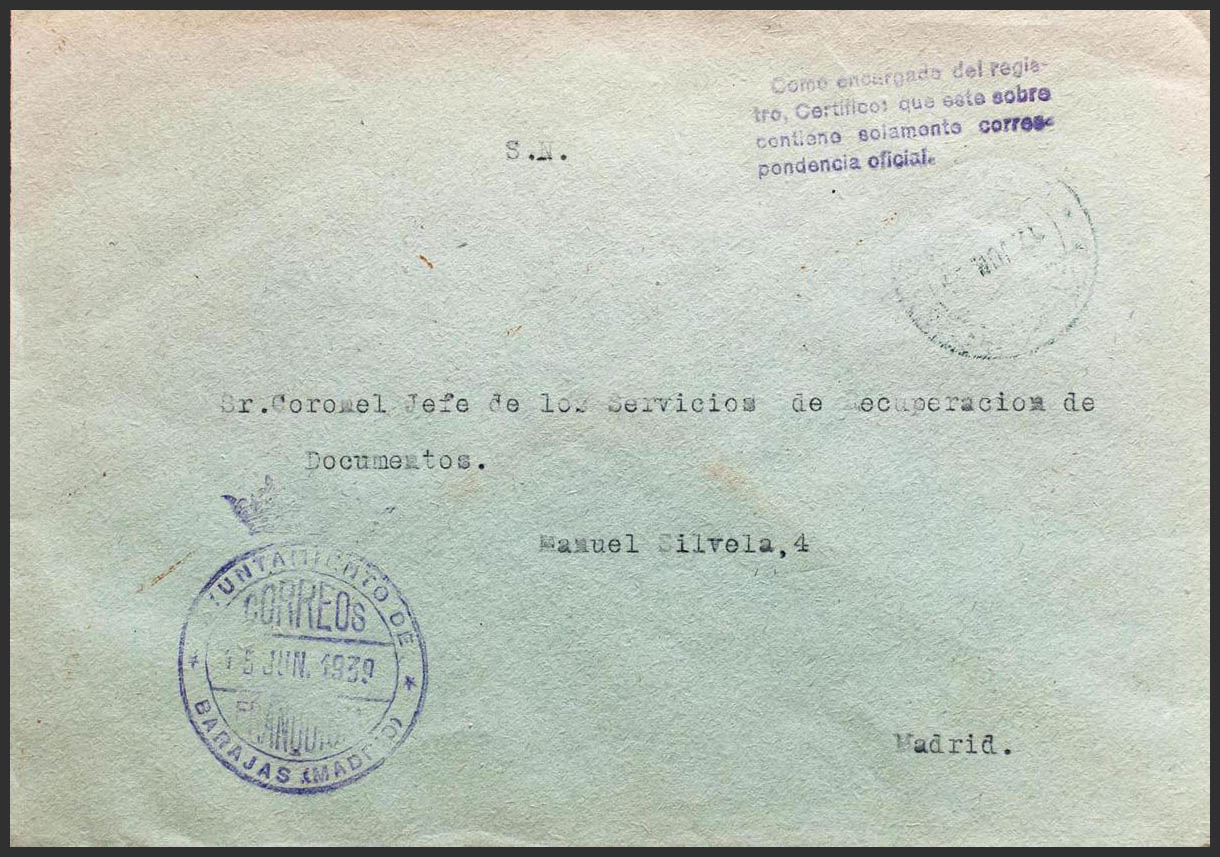 1939. BARAJAS a MADRID. Marca de franquicia AYUNTAMIENTO DE / BARAJAS (MADRID). MAGNIFICA.