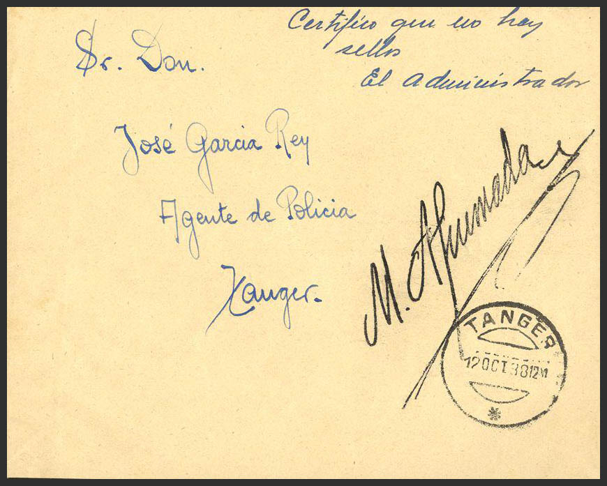 Franquicia. "Certifico no existen sellos...". MAGNIFICA Y RARA.