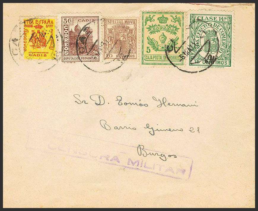 Franquicia. CADIZ / 12, al dorso llegada. MAGNIFICA.