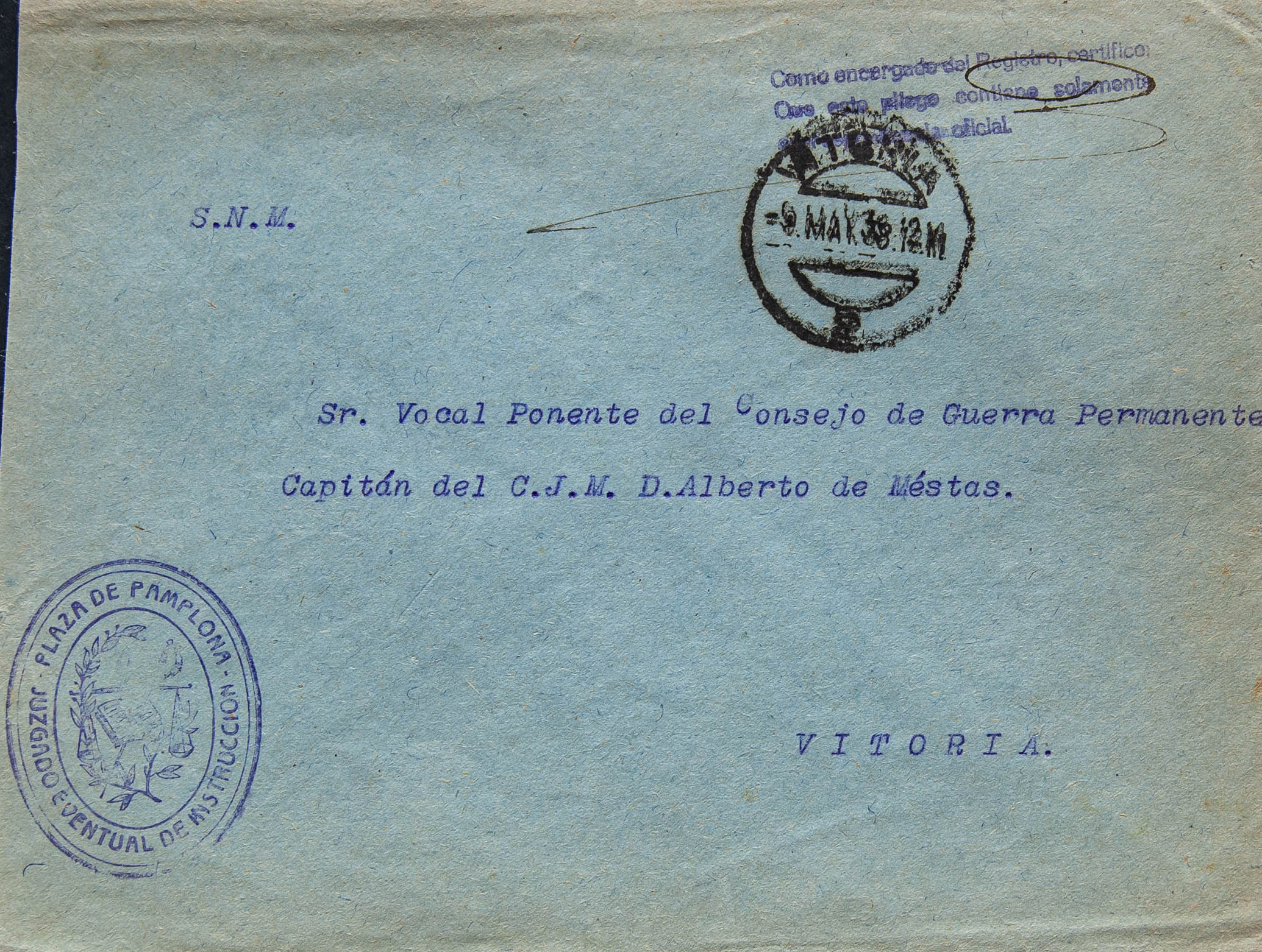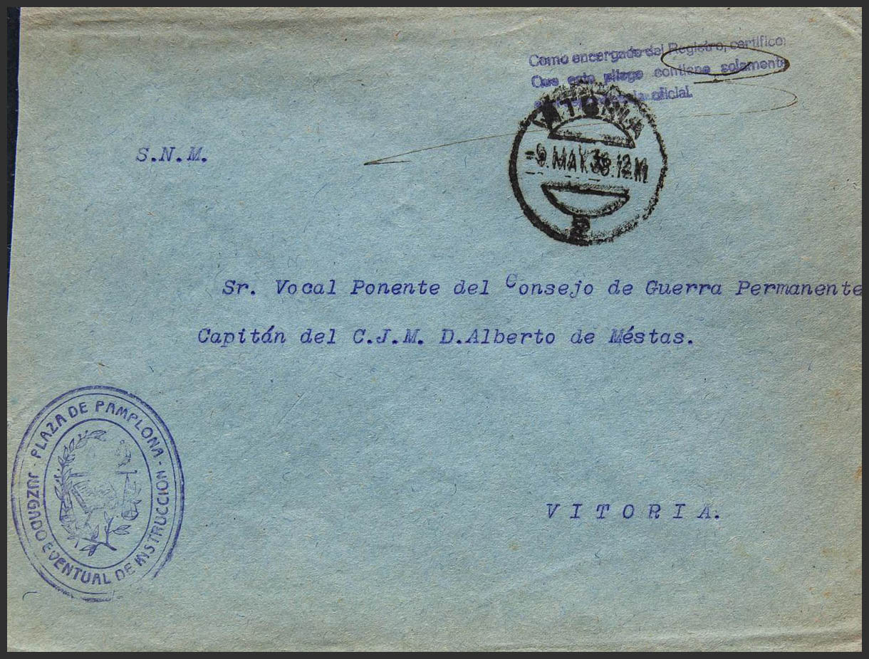 Correo / Franquicias Militares. PAMPLONA a VITORIA. MAGNIFICA.