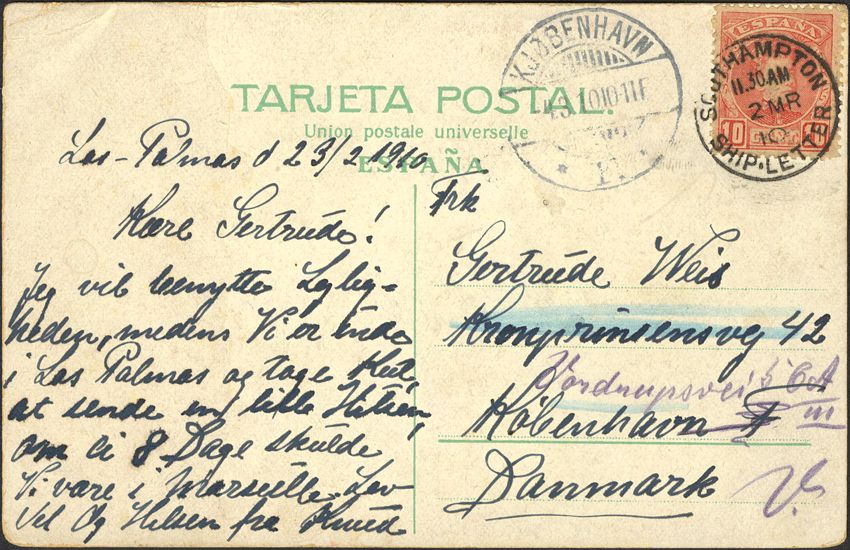 Correo MarÃtimo. Matasello SOUTHAMPTON / SHIP-LETTER. MAGNIFICO.