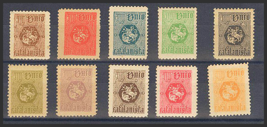 ★(1900ca). Diez viñetas separatistas, en diez colores diferentes. MAGNIFICAS E INUSUALES.