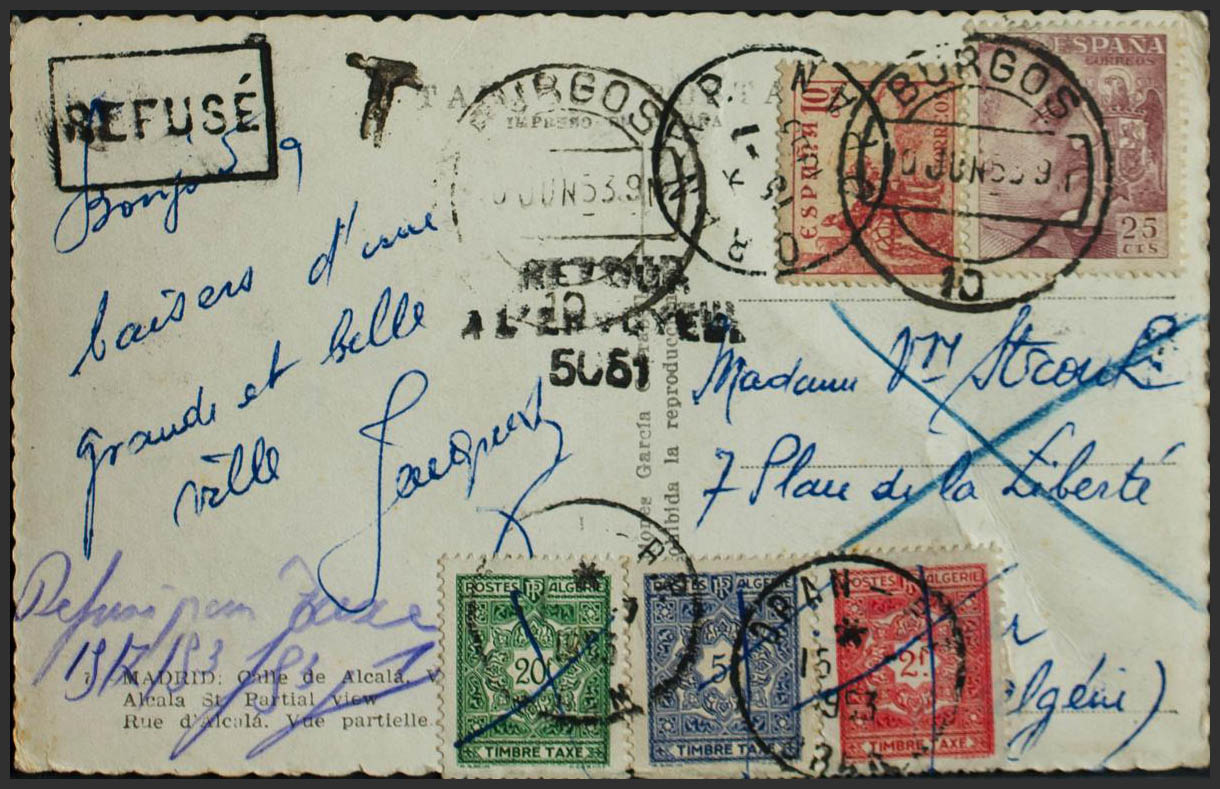 Franqueo Mixto. Franqueo mixto ESPAÑA-ARGEL. RARISIMO.