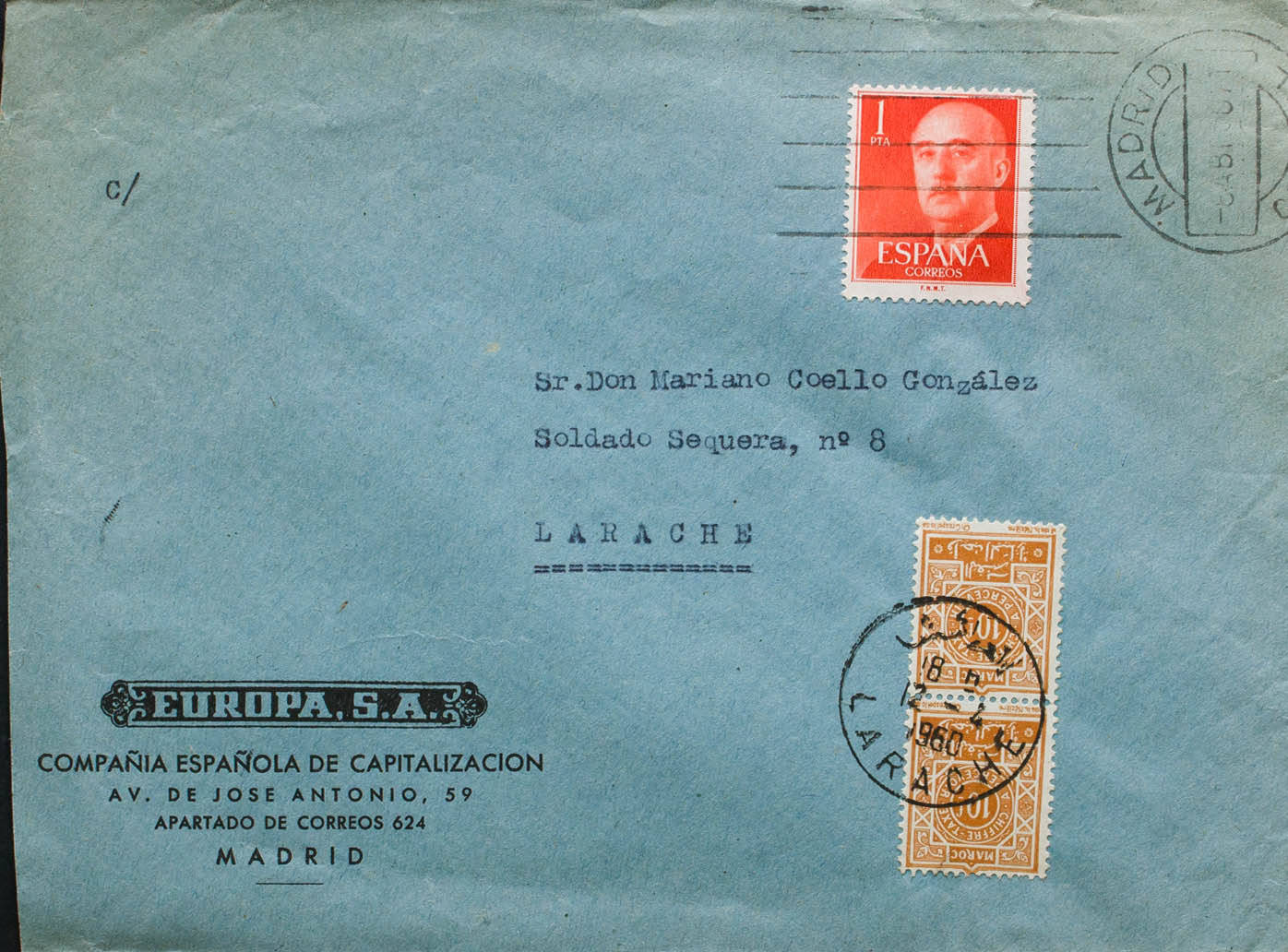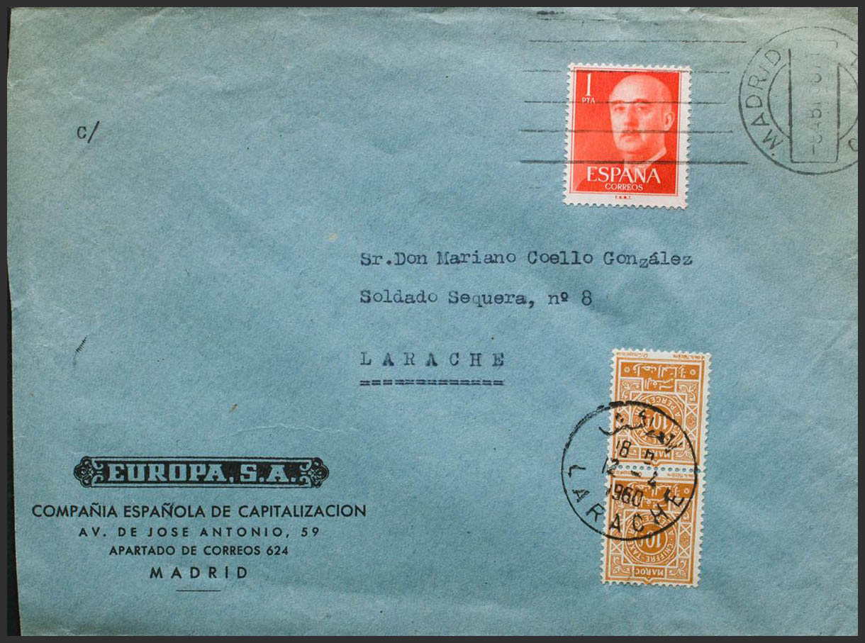 Franqueo Mixto. Sello de Marruecos. MAGNIFICA.