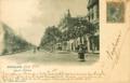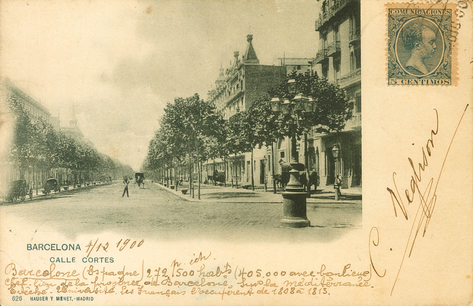 215. 1900. 5 cts azul. Tarjeta Postal de BARCELONA a TILFF (BELGICA). Tasada en destino por franqueo insuficiente, aplicando marca "T", en negro y sello de tasas belga de 5 cts verde. MAGNIFICA.