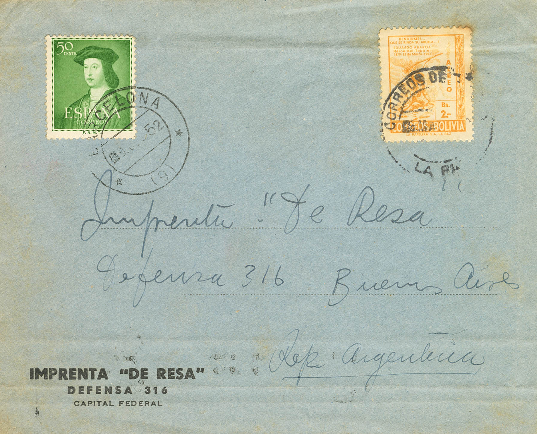 Franqueo Mixto. Tasada a la llegada a Bolivia. MAGNIFICA Y RARISIMA.
