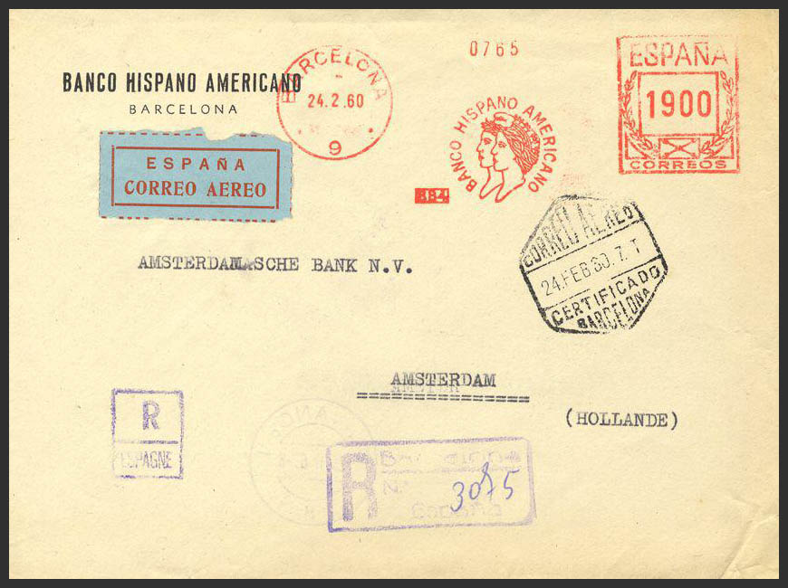 Matasello de Rodillo. CORREO AEREO. MUY RARO.