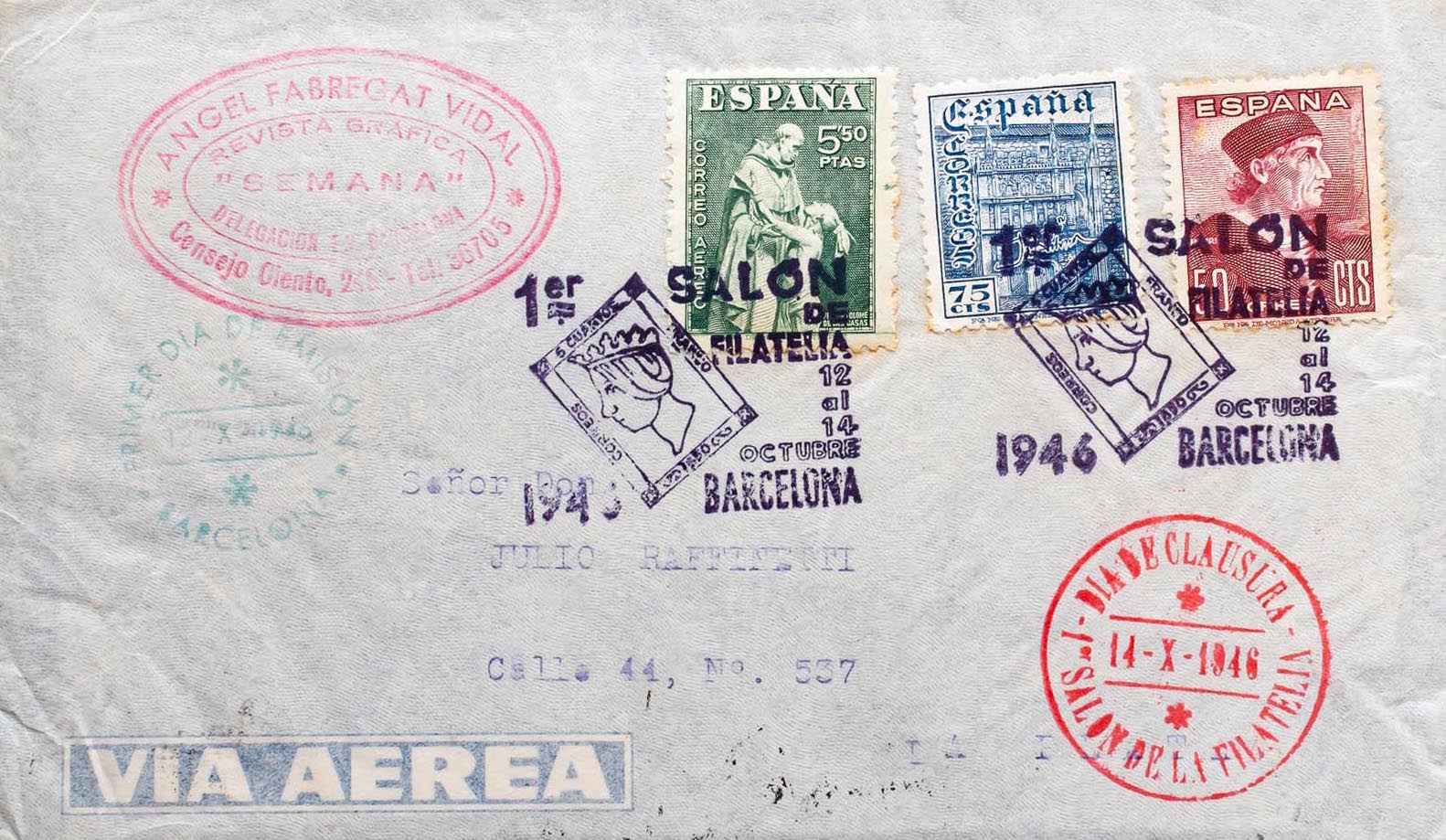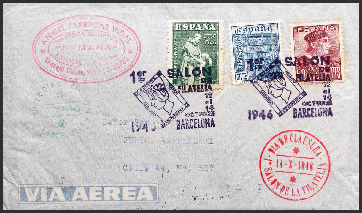 Matasello Especial. 1º SALON DE FILATELIA. Al dorso llegada. MAGNIFICA.