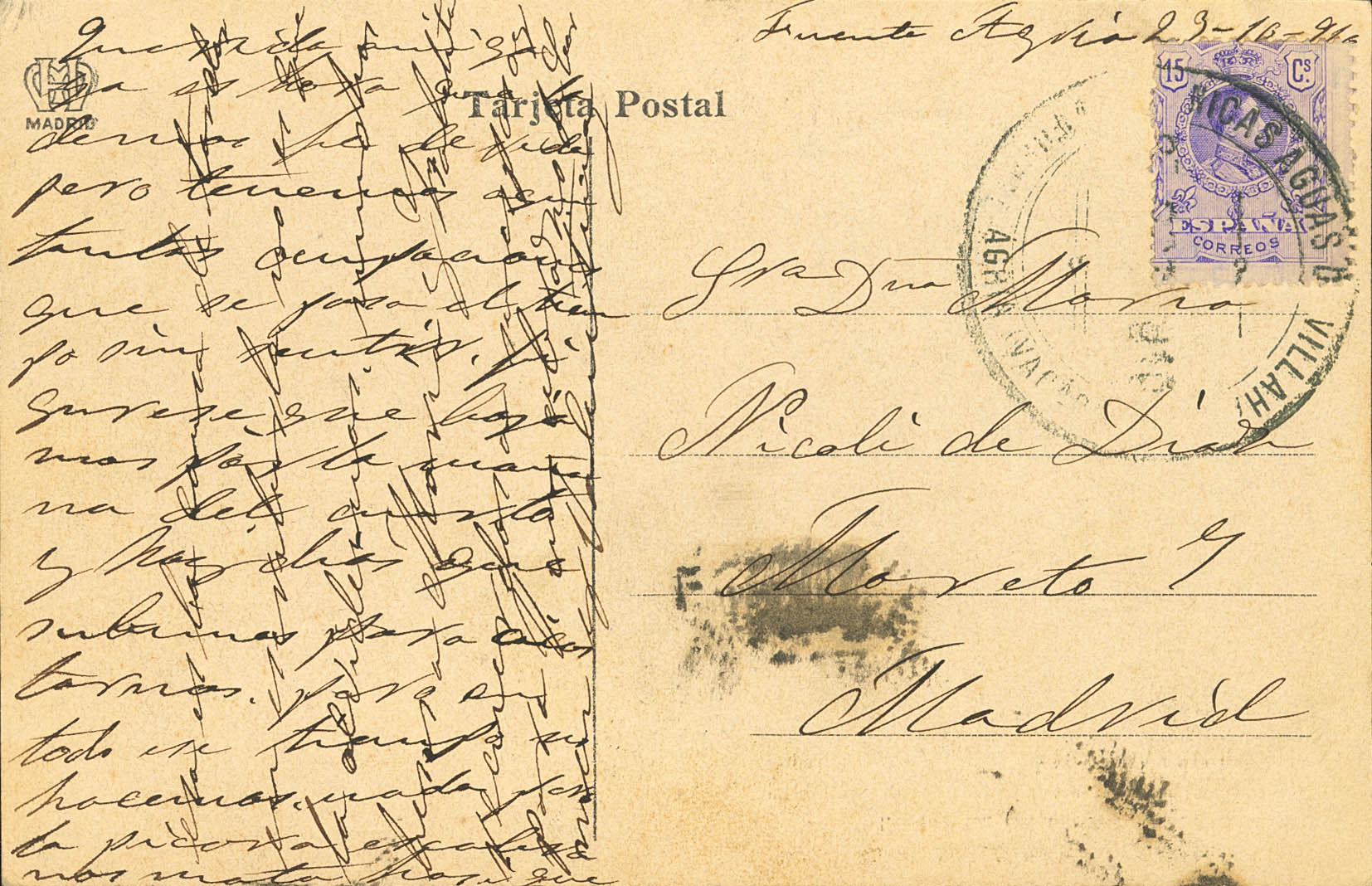 Matasello Especial. Matasello RICAS AGUAS DE VILLA H... / FUENTE AGRIA... MAGNIFICA.