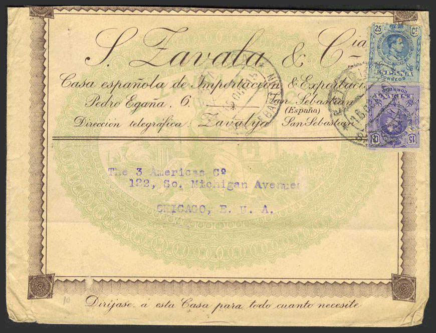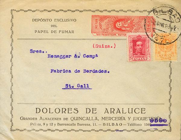Sobre Publicitario. Membrete COMPAÑIA NAVIERA SOTA Y AZNAR. BILBAO. MAGNIFICA Y RARA.