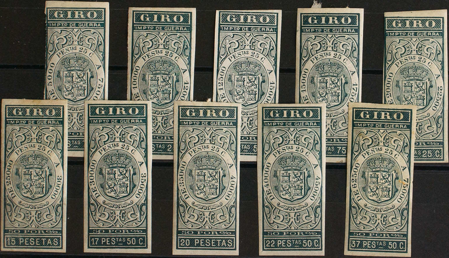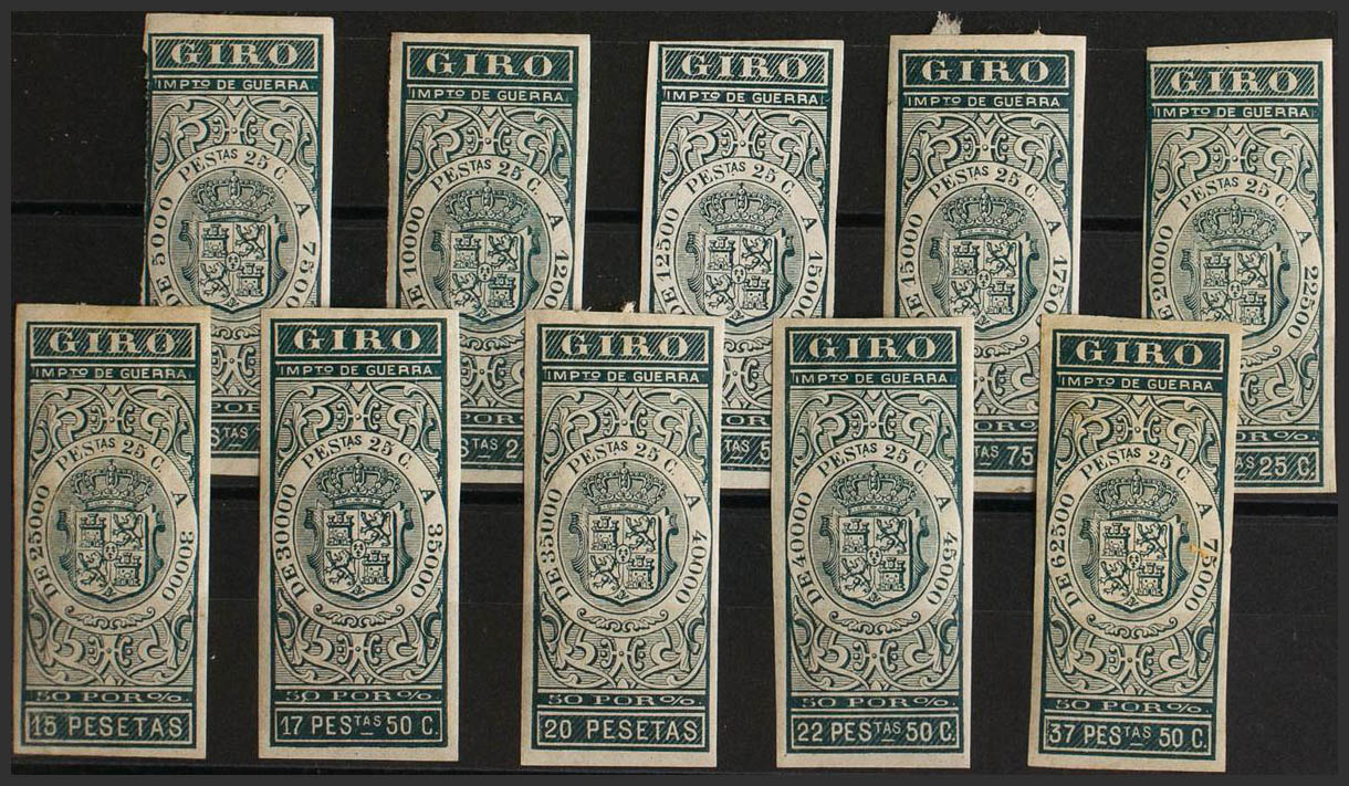 (★)1876. SELLOS PARA GIRO de 1876. Serie completa, a falta del 31´25 pts. SIN DENTAR. MAGNIFICA. (Alemany 96/107s, 110s)