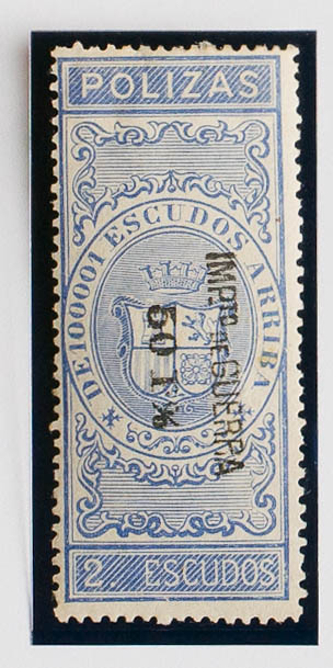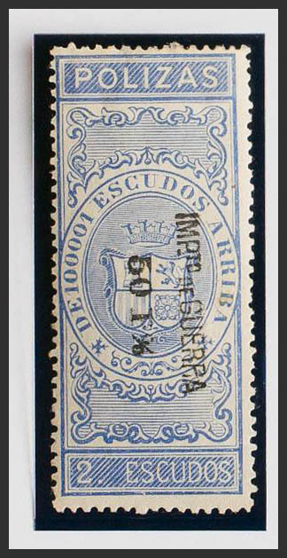 ★1874. POLIZAS DE BOLSA de 1874. 2 escudos ultramar. IMPUESTO DE GUERRA (sobrecarga invertida). MAGNIFICO. (Alemany 17)