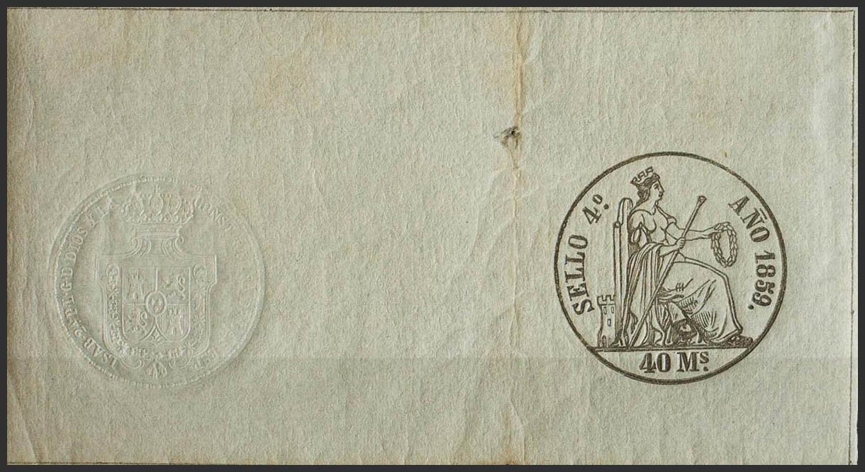 ★1859. POLIZAS de 1859. 40 ms negro, completo con sello en seco. MAGNIFICO Y MUY RARO. (Alemany 13)