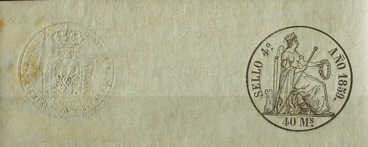 ★1859. POLIZAS de 1859. 40 ms negro, completo con sello en seco. MAGNIFICO Y MUY RARO. (Alemany 13)