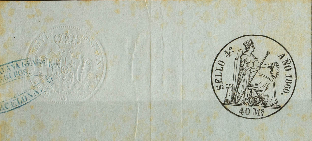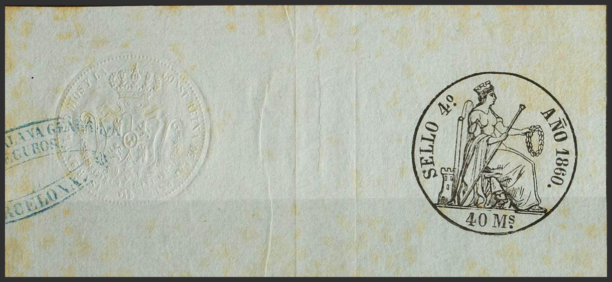 (★)1860. POLIZAS de 1860. 40 ms negro, completo con sello en seco y marca comercial (tonalizado, sin importancia). BONITO Y MUY RARO. (Alemany 17)