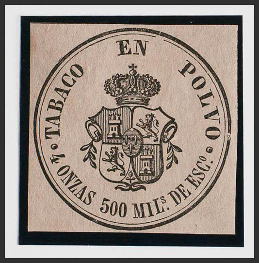 (★)(1867ca). IMPUESTO DEL TABACO de (1867ca). 500 mils negro sobre lila. TABACO EN POLVO. MAGNIFICO Y MUY RARO, NO RESEÑADO.