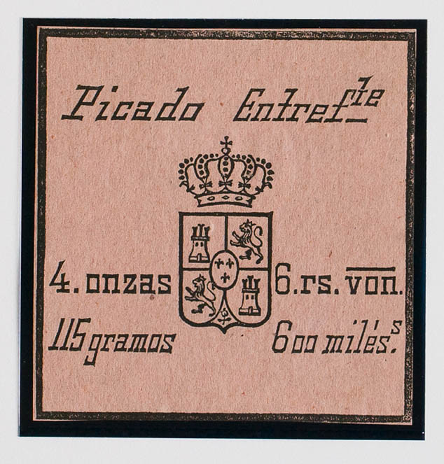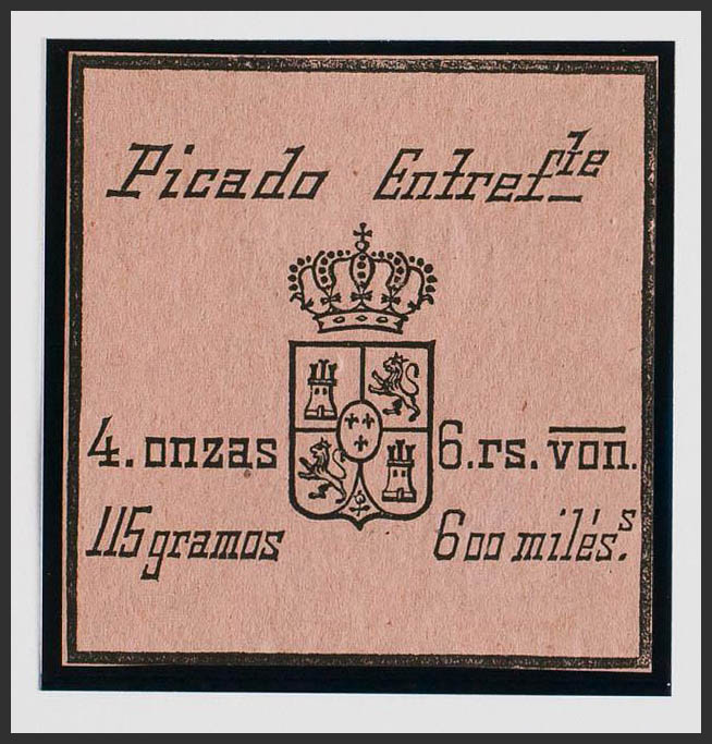 (★)(1868ca). IMPUESTO DEL TABACO de (1868ca). 600 mils negro sobre rosa. PICADO ENTREFTE. MAGNIFICO Y MUY RARO, NO RESEÑADO.