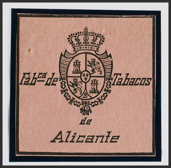 (★)(1868ca). IMPUESTO DEL TABACO de (1868ca). Sin valor, negro sobre rosa. FABCª DE TABACOS DE ALICANTE. MAGNIFICO Y RARO, NO RESEÑADO.