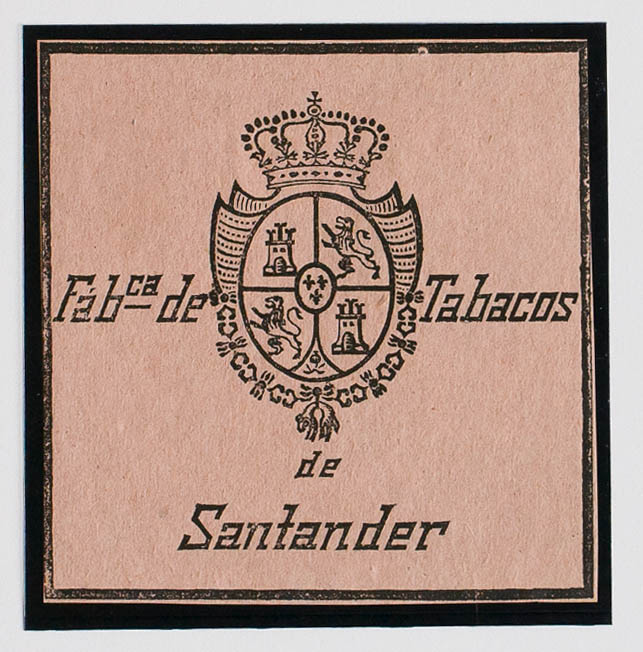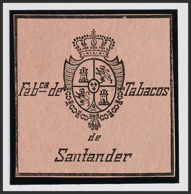 (★)(1868ca). IMPUESTO DEL TABACO de (1868ca). Sin valor, negro sobre rosa. FABCª DE TABACOS DE SANTANDER. MAGNIFICO Y RARO, NO RESEÑADO.