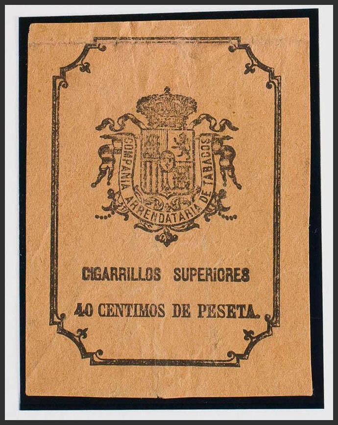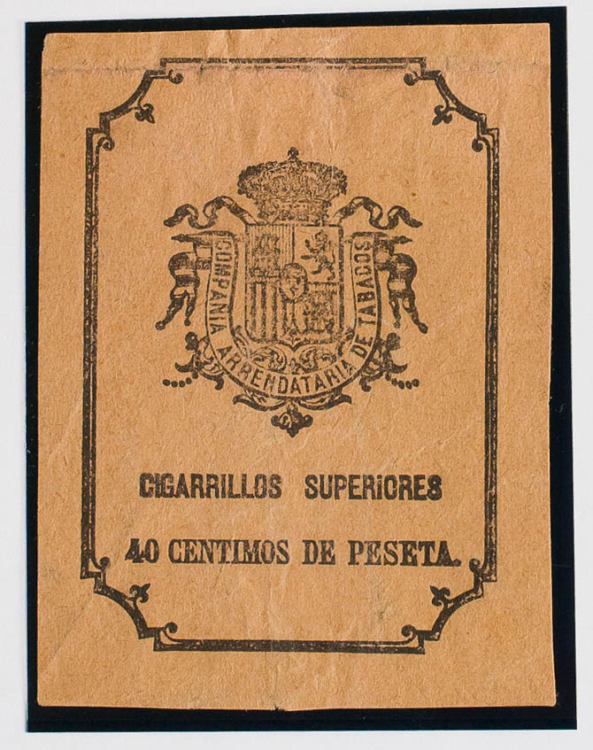 (★)(1876ca). IMPUESTO DEL TABACO de (1876ca). 40 cts negro sobre salmón. CIGARRILLOS SUPERIORES. MAGNIFICO Y MUY RARO, NO RESEÑADO.