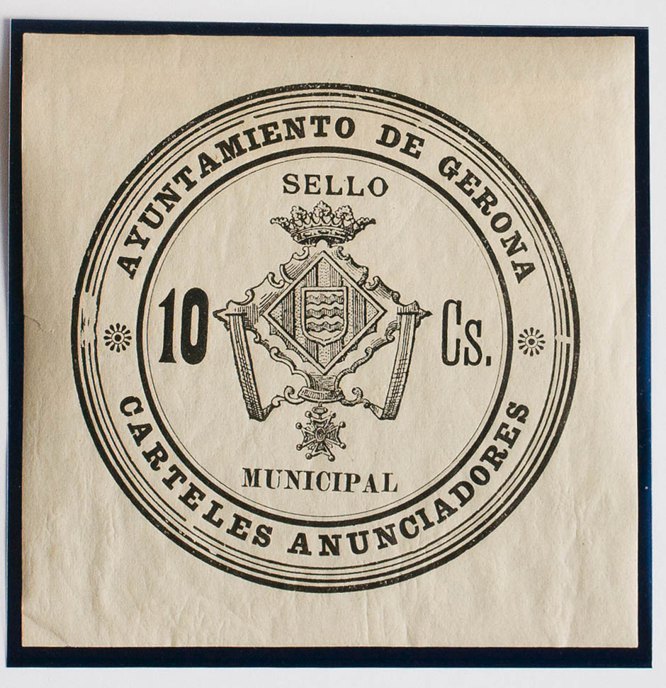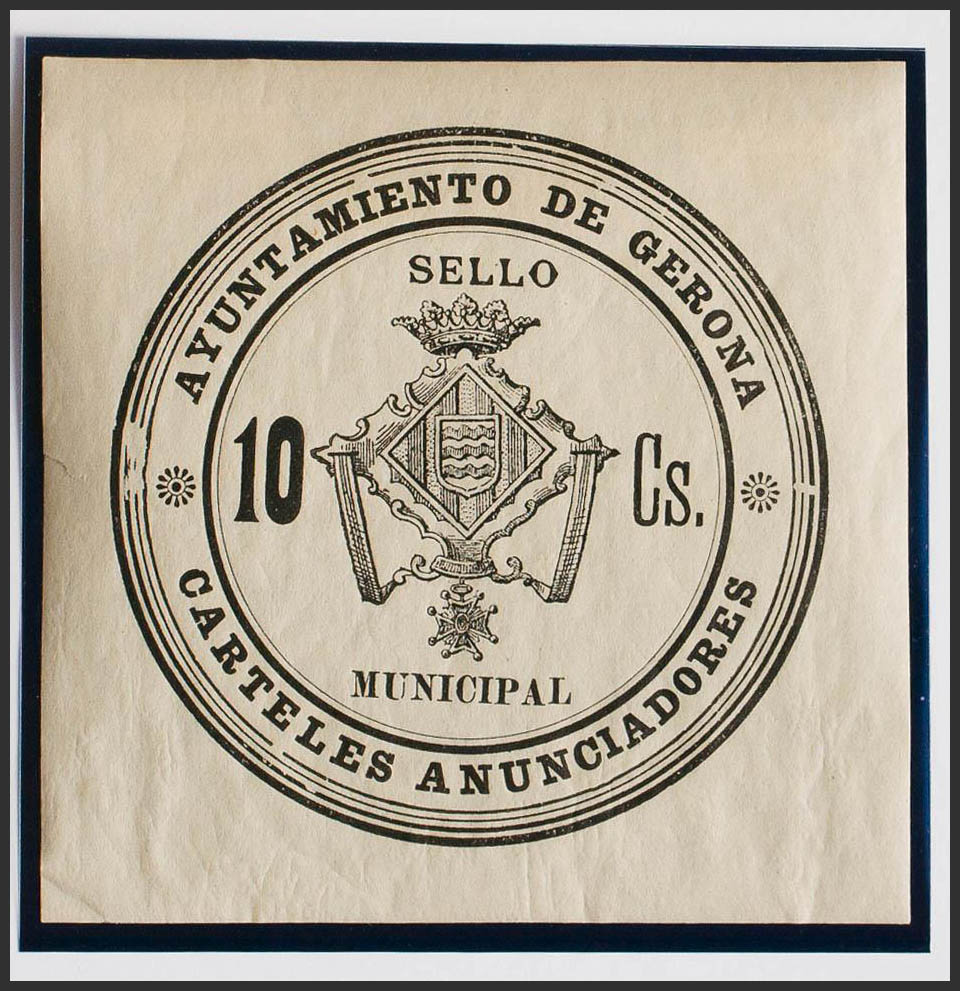 ★(1886ca). GERONA de (1886ca). IMPUESTO MUNICIPAL. 10 cts negro. SELLO MUNICIPAL / CARTELES ANUNCIADORES. MAGNIFICO Y RARO, NO RESEÑADO.