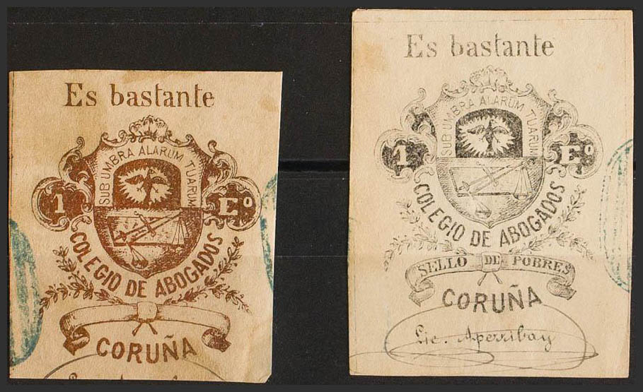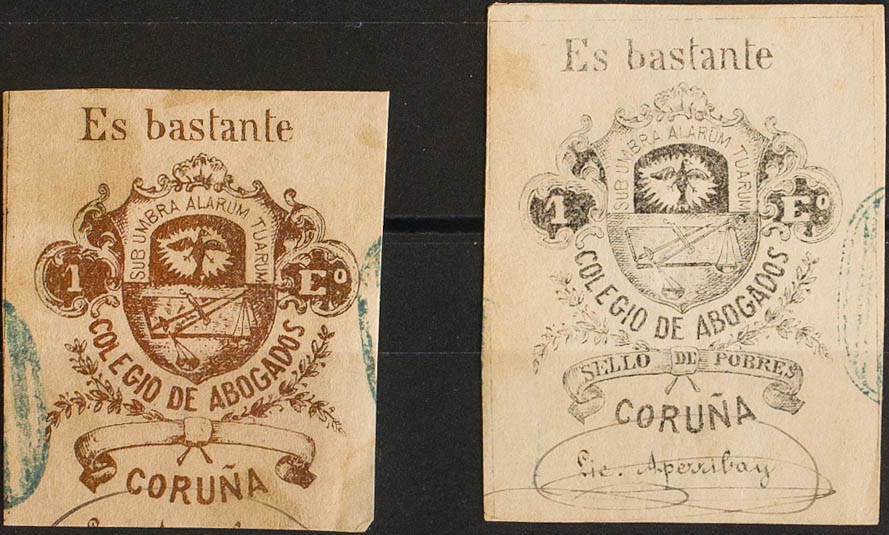 1868. LA CORUÑA. COLEGIO DE ABOGADOS de 1868. 1 escudo bronce y 1 escudo negro. MAGNIFICOS Y RAROS. (Fulcher 1788/89)