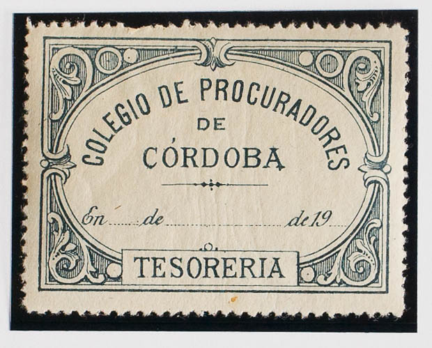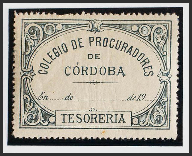 ★(1900ca). CORDOBA. COLEGIO DE PROCURADORES de (1900ca). Sin valor, pizarra. TESORERIA. MAGNIFICO.