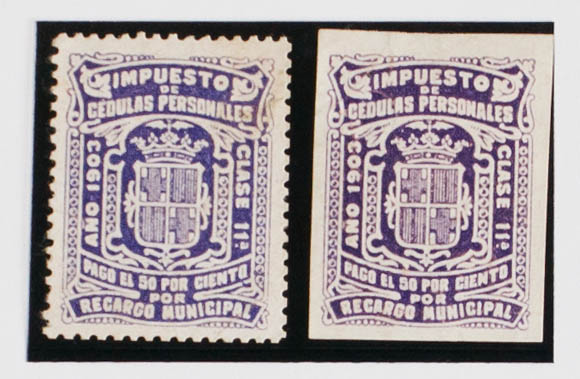 (★)1903. BARCELONA de 1903. IMPUESTO MUNICIPAL. Sin valor, violeta (dentado y sin dentar). CEDULAS PERSONALES. MAGNIFICAS.
