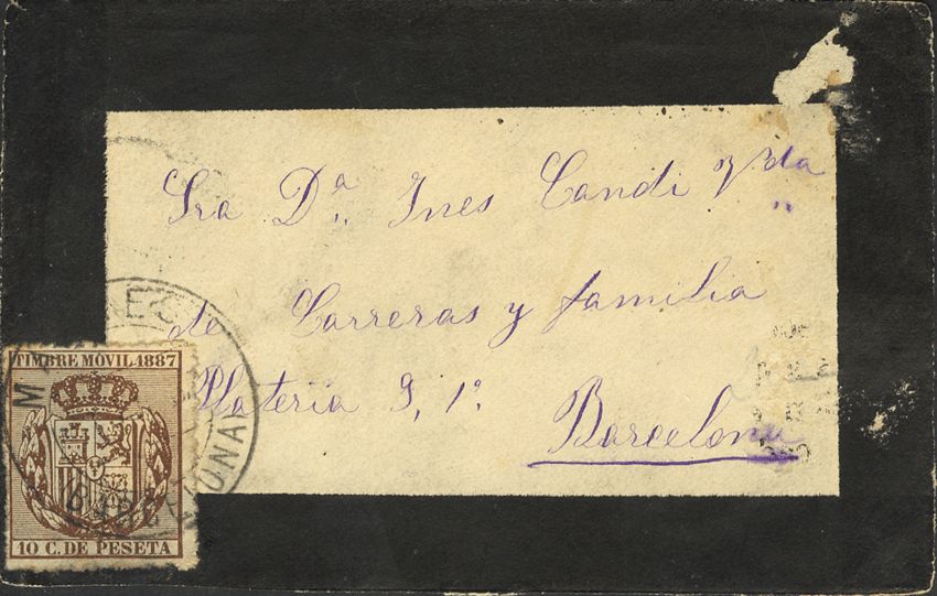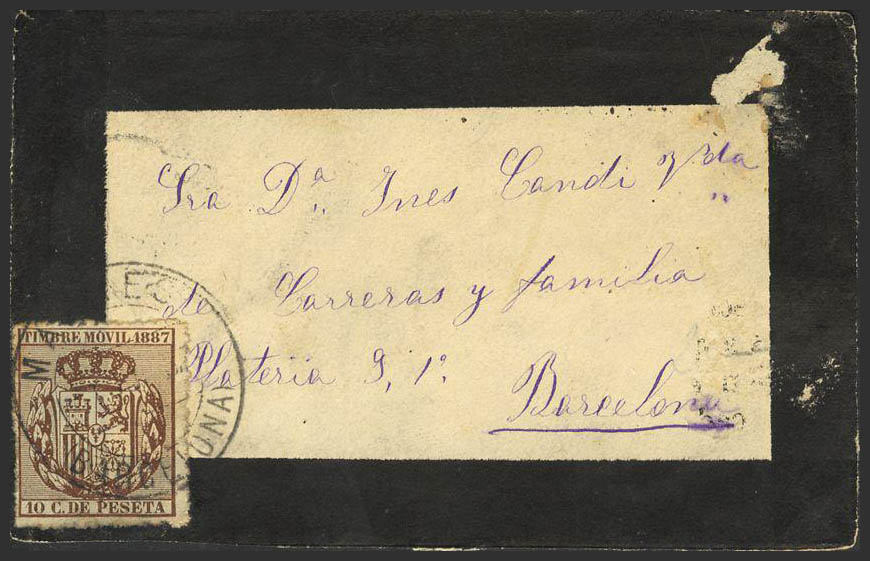 Fis 7. 1887. 10 cts MOVIL. Frontal de MANRESA a BARCELONA. MAGNIFICO Y RARO.