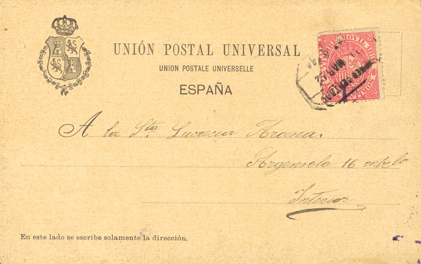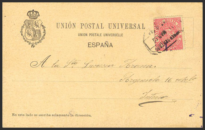 Fis 11. 1887. 10 cts rosa MOVIL. Tarjeta de correo Interior de BILBAO. MAGNIFICA Y RARA.