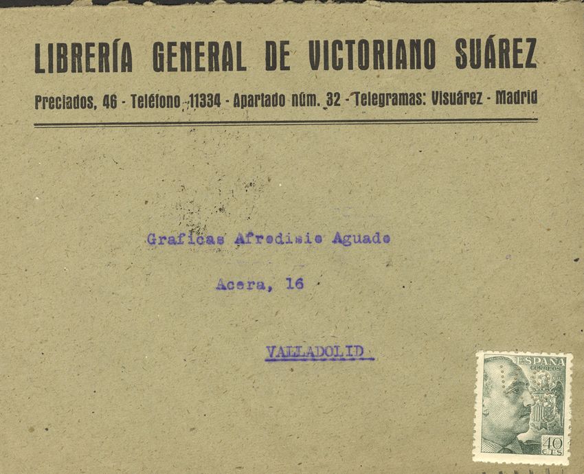 Perforado. "V.S." LIBRERIA VICTORIANO SUAREZ. MAGNIFICA.