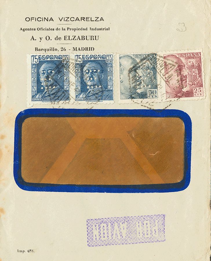 Perforado. "E". CORREO AEREO / MADRID. MAGNIFICA.